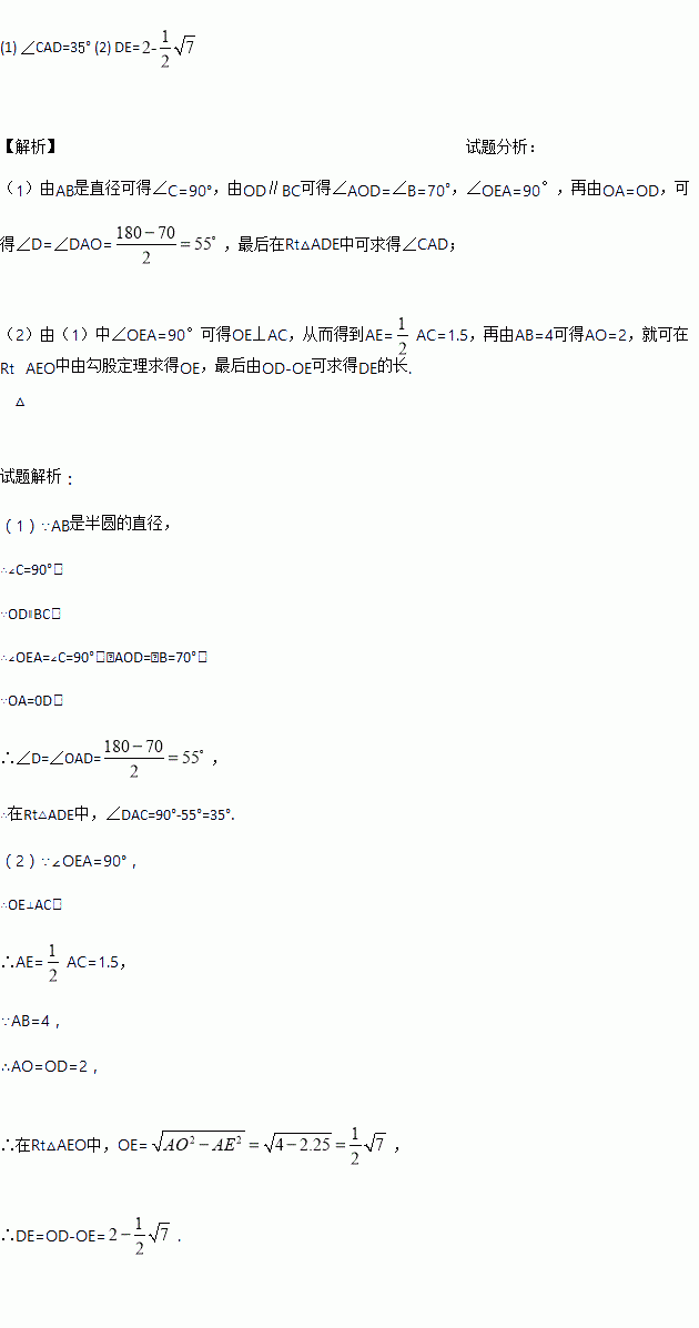 如图,AB是半圆O的直径,C、D是半圆O上的两点,且OD∥BC,OD与AC交于点E.
