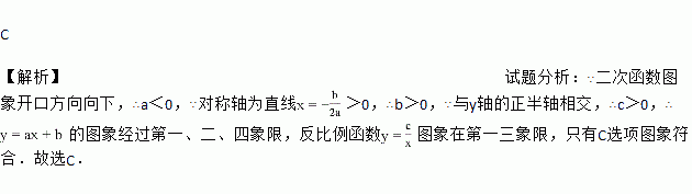 二次函数y=ax2+bx+c的图象在平面直角坐标系中的位置如图所示,则一次函数y=ax+b与反比例函数y=在同一平面直角坐标系中的图象可能是( )