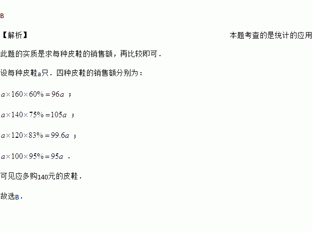 皮鞋价(元) | 160 | 140 | 120 | 100 |