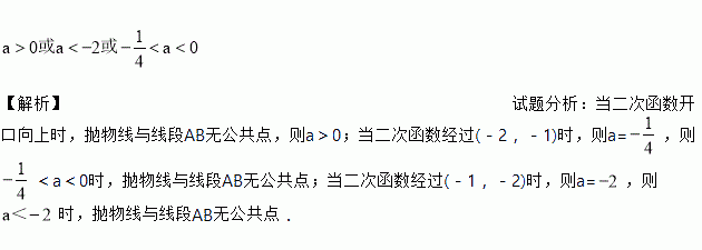 已知抛物线与线段AB无公共点,且A(-2,-1),B(-1,-2),则a的取值范围是___________.