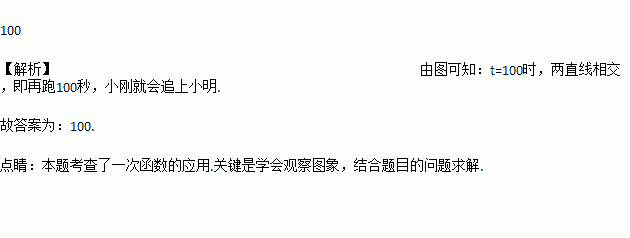 在一次越野赛跑中,当小明跑了1600米时,小刚跑了1400米,小明、小刚在此后所跑的路程 (米)与时间 (秒)之间的函数图象如图所示,根据图象可知再跑____秒,小刚就会追上小明.