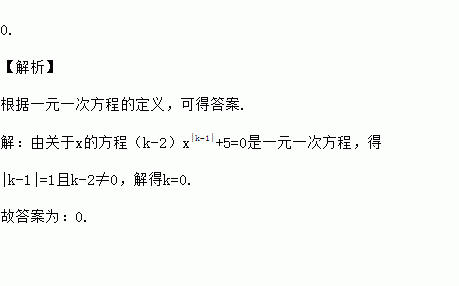若关于x的方程(k﹣2)x|k﹣1|+5=0是一元一次方程,那么k=_______.