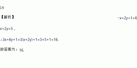 已知代数式x+2y+1的值是6,则代数式3x+6y+1的值是__________