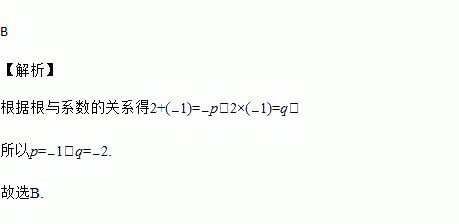如果关于x的一元二次方程x2+px+q=0的两根分别为x1=2,x2=-1,那么p,q的值分别是 ( )