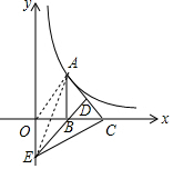 分析 由点(1,4)在双曲线上,可求出k=4,根据点D为AC的中点可得出S△EAD=S△ECD、S△BAD=S△BCD,进而可得出S△BCE=S△BAE,再根据△ABE和△ABO同底等高利用反比例系数k的几何意义即可得出S△BCE=S△BAE=S△ABO=$\frac{1}{2}$|k|=2,此题得解.