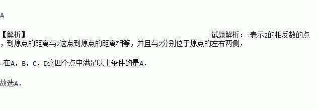 如图,数轴上有A,B,C,D四个点其中表示2的相反数的点是( ).