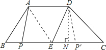 ②当BP′=11时,以点P、A、D、E为顶点的四边形能构成菱形;![]()