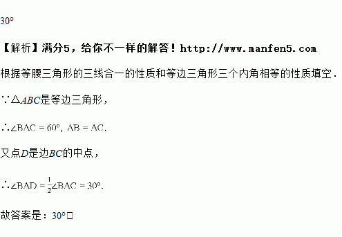 如图,在等边三角形ABC中,点D是边BC的中点,则∠BAD=_________.