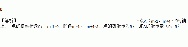 已知点A(m-1,m+4)在y轴上,则点A的坐标是( )