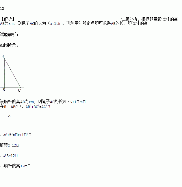 小明想知道学校旗杆的高,他发现旗杆上的绳子垂到地面还多1m,当它把绳子的下端拉开5m后,发现下端刚好接触地面,则旗杆的高为多少?