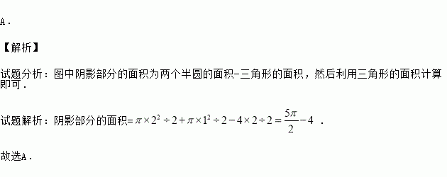 如图,在Rt△ABC中,∠C=90°,AC=4,BC=2,分别以AC、BC为直径画半圆,则图中阴影部分的面积为( )