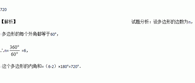 一个多边形的每一个外角都是60°,则这个多边形的内角和为____°.