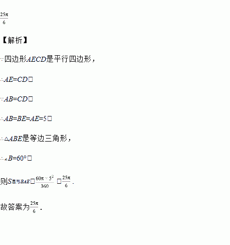 如图,四边形ABCD中,,,以点B为圆心,BA为半径的圆弧与BC交于点E,四边形AECD是平行四边形,,则图中阴影部分扇形面积是______.