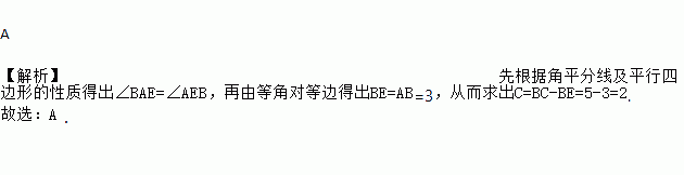 如图,平行四边形ABCD中,AD=5,AB=3,若AE平分∠BAD交边BC于点E,则线段EC的长度为( )