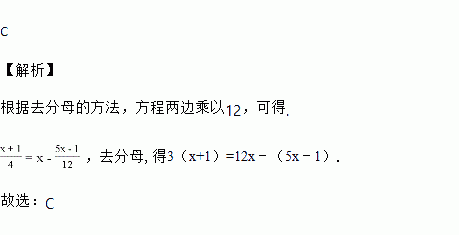 A. 3(x+1)=x﹣(5x﹣1) B. 3(x+1)=12x﹣5x﹣1