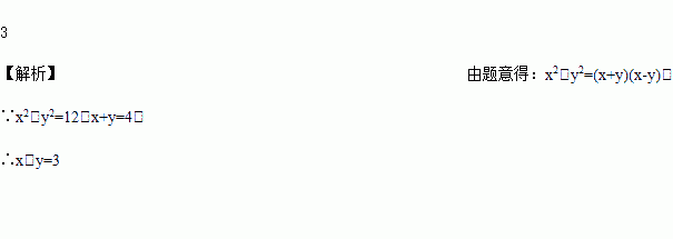 若x2﹣y2=12,x+y=4,则x﹣y=_________.