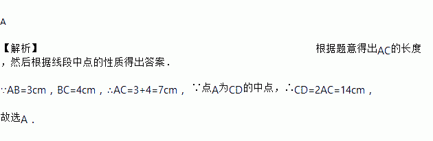 已知线段AB=3cm,延长线段AB到C,使BC=4cm,延长线段BA到D,使A为DC的中点,则线段CD的长为( )