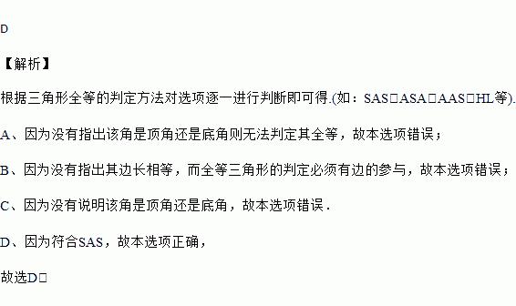 C. 各有一个角是,腰长都是8cm的两个等腰三角形