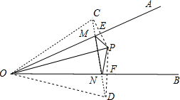 分析:作P关于直线OA的对称点C,作P关于直线OB的对称点D,连接CD,交AB于M,交OB于N,则此时△PMN的周长最小,连接OC,OD,根据对称性质得出CM=PM,PN=ND,∠COE=∠POE,∠POF=∠DOF,OC=OP=OD=a,求出∠COD=60°,得出△COD是等边三角形,推出CD=OC=OD=a,求出△PMN的周长的最小值是PM+MN+PN=CD,代入即可得出答案.