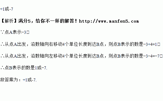 在数轴上,点A表示的数为-3,将点A在数轴上移动4个单位长度到达点B,则点B表示的数是__________