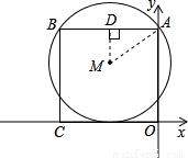 【答案】分析:过点M作MD⊥AB于D,连接AM,设⊙M的半径为R,因为四边形OABC为正方形,顶点A,C在坐标轴上,以边AB为弦的⊙M与x轴相切,若点A的坐标为(0,8),所以DA=4,AB=8,DM=8-R,AM=R,又因△ADM是直角三角形,利用勾股定理即可得到关于R的方程,解之即可.