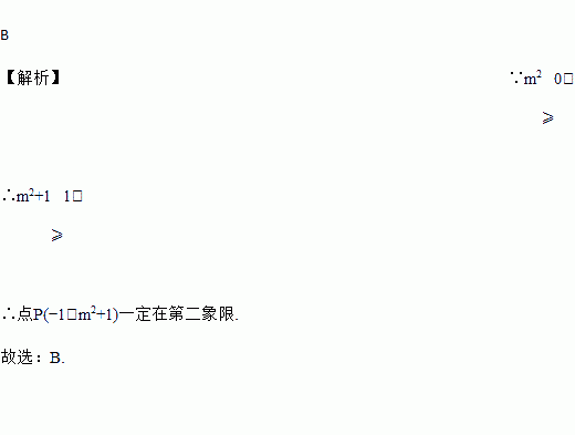 B 【解析】∵m2?0, ∴m2+1?1, ∴点P(?1,m2+1)一定在第二象限. 故选:B.