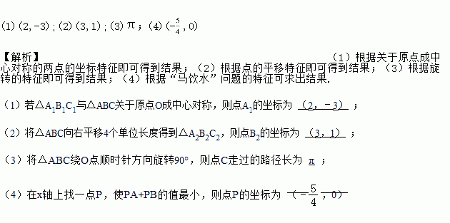 (3)将△ABC绕O点顺时针方向旋转90°,则点C走过的路径长为 ;