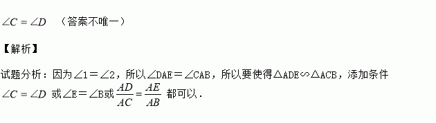 如图,∠1=∠2,添加一个条件 使得△ADE∽△ACB.