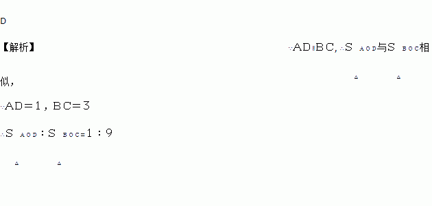 如图,梯形ABCD中,AD∥BC,AC、BD交于点O,AD=1,BC=3,则S△AOD:S△BOC等于( )