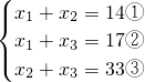 三个实数按从小到大排列为x1,x2,x3,把其中每两个数作和得到三个数分别是14,17,33,则x2=________.