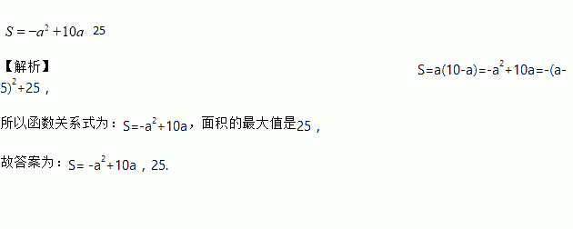 如图,利用成直角的墙角(墙足够长),用10m长的栅栏围成一个矩形的小花园,花园的面积S(m2)与它一边长a(m)的函数关系式是__________,面积S的最大值是__________.