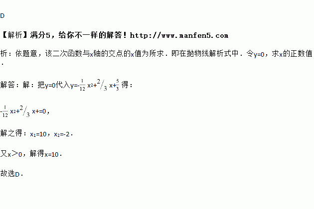 铅球运动员掷铅球的高度y(m)与水平距离x(m)之间的函数关系式为y=-x2+x+.则该运动员此次掷铅球的成绩是( )