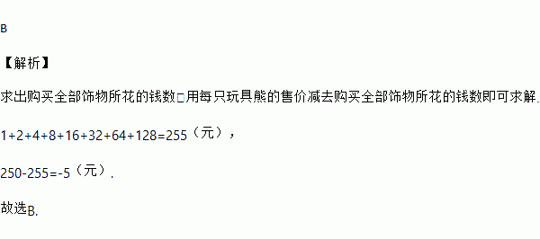 元.如果购买全部饰物,那么玩具熊就免费赠送.”若按这样的付费办法,这只熊比原售价便宜了( )![]()