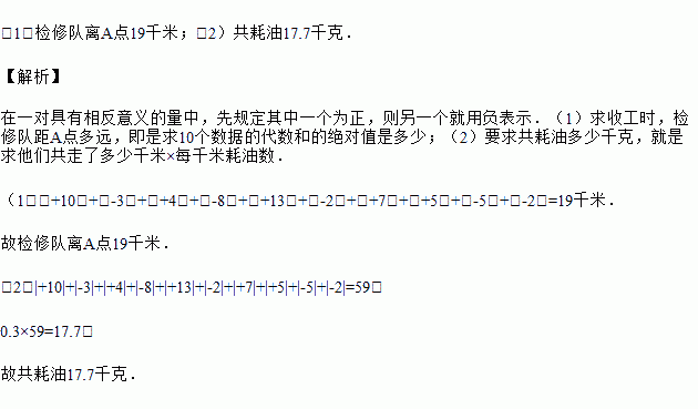 (2)若每千米耗油0.3千克,问从A点出发到收工,共耗油多少千克?