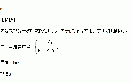 一次函数y=(k﹣2)x+k2﹣4的图象经过原点,则k的值为( )