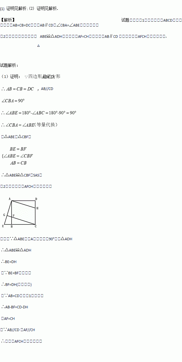 (2)将△ABE绕点A逆时针旋转90°得到△ADH,请判断四边形AFCH是什么特殊四边形,并说明理由.