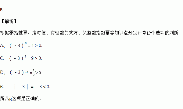 A. (-3)0 B. -|-3| C. (-3)2 D. (-3)-2