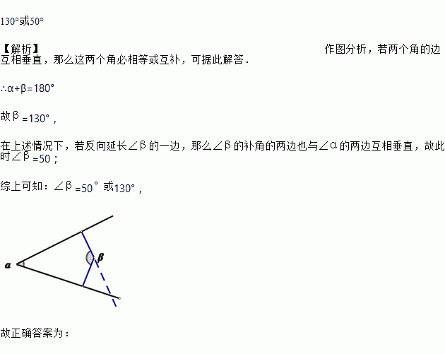 与的两边互相垂直,且,则的度数为_________.
