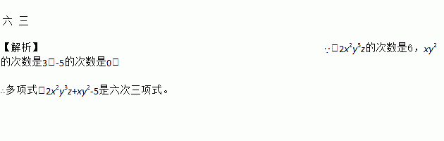 多项式-2x2y3z+xy2-5是______次_______ 项式。