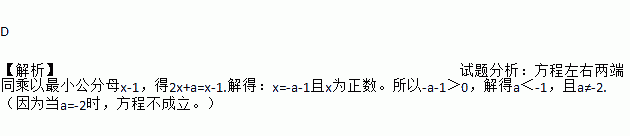 关于x的方程的解是正数,则a的取值范围是( )