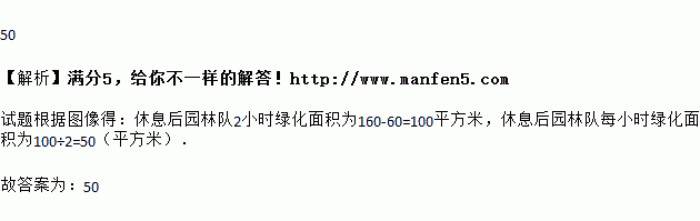 园林队在某公司进行绿化,中间休息了一段时间,已知绿化面积S(平方米)与工作时间t(小时)的关系的图象如图所示,则休息后园林队每小时绿化面积为__平方米.