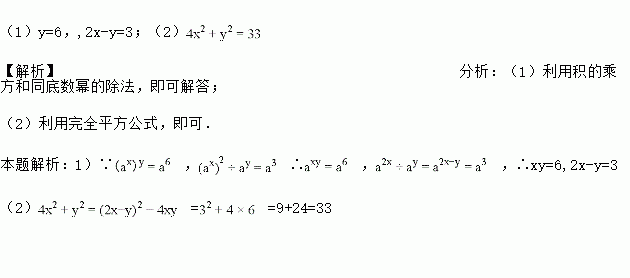 已知(ax)y=a6,(ax)2÷ay=a3