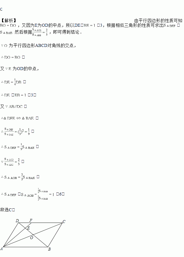 如图,在?ABCD中,AC与BD相交于点O,E为OD的中点,连接AE并延长交DC于点F,则:的值为