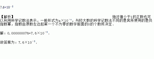 世界上最小的开花结果植物是澳大利亚的出水浮萍,这种植物的果实像一个微小的无花果,质量只有0.000000076克,用科学记数法表示是_____克.