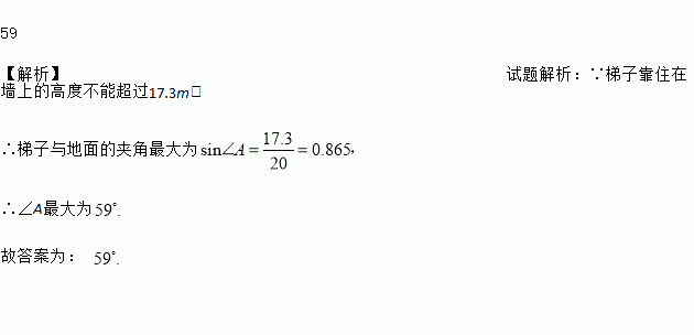 2013年4月20日雅安芦山县发生7.0级地震,某救援队赶赴灾区参加救援,救援队员现有一长为20m的梯子,为安全起见梯子靠在墙上的高度不能超过17.3m.求梯子与地面的夹角不超过___度时才是安全的.(精确到1°)
