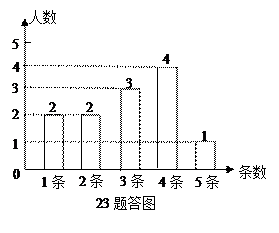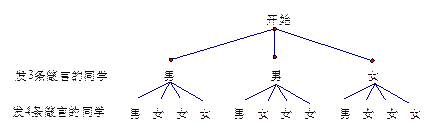 (2) 如果发了3条箴言的同学中有两位男同学,发了4条箴言的同学中有三位女同学.现要从发了3条箴言和4条箴言的同学中分别选出一位参加该校团委组织的“箴言”活动总结会,请你用列表法或树状图的方法求出所选两位同学恰好是一位男同学和一位女同学的概率.