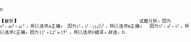 A. a=9,b=41,c=40 B. a=b=5,c=5