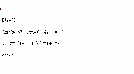 如图,直线a、b相交于点O,若∠1等于40°,则∠2等于( )