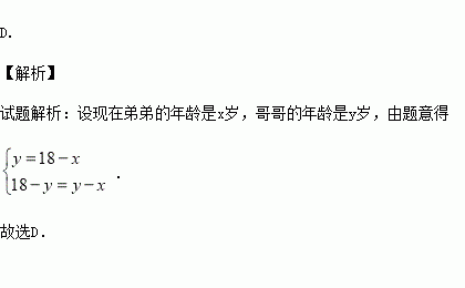 哥哥与弟弟的年龄和是18岁,弟弟对哥哥说:“当我的年龄是你现在年龄的时候,你就是18岁”.如果现在弟弟的年龄是x岁,哥哥的年龄是y岁,下列方程组正确的是( )