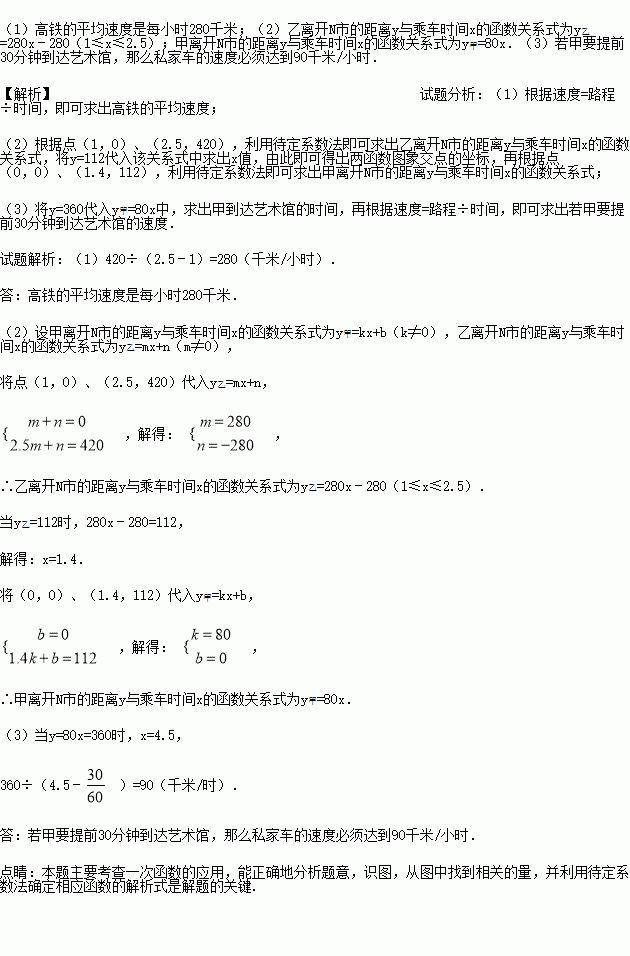 (3)若甲要提前30分钟到达艺术馆,那么私家车的速度必须达到多少千米/小时?